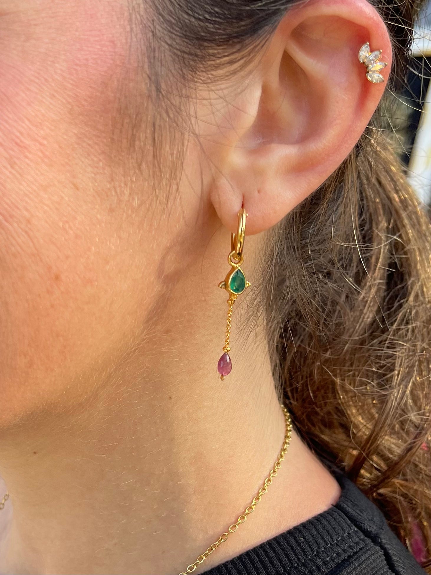 En Bechi Ulivi Jewels, nos enorgullecemos de nuestro compromiso con la calidad. Cada pendiente está elaborado en latón de primera calidad y chapado en oro de 1 micra en España, lo que garantiza su durabilidad y un acabado de lujo. Las piedras naturales de Aros Estrella pueden variar en tono, lo que les confiere un carácter único, pero tenga la seguridad de que cada par está diseñado para deslumbrar. La versatilidad de estos pendientes te permite lucirlos de tres maneras distintas: con la cadena, sin la cadena o simplemente como elegantes aros. Esta adaptabilidad los convierte en una pieza esencial en cualquier colección de joyas.