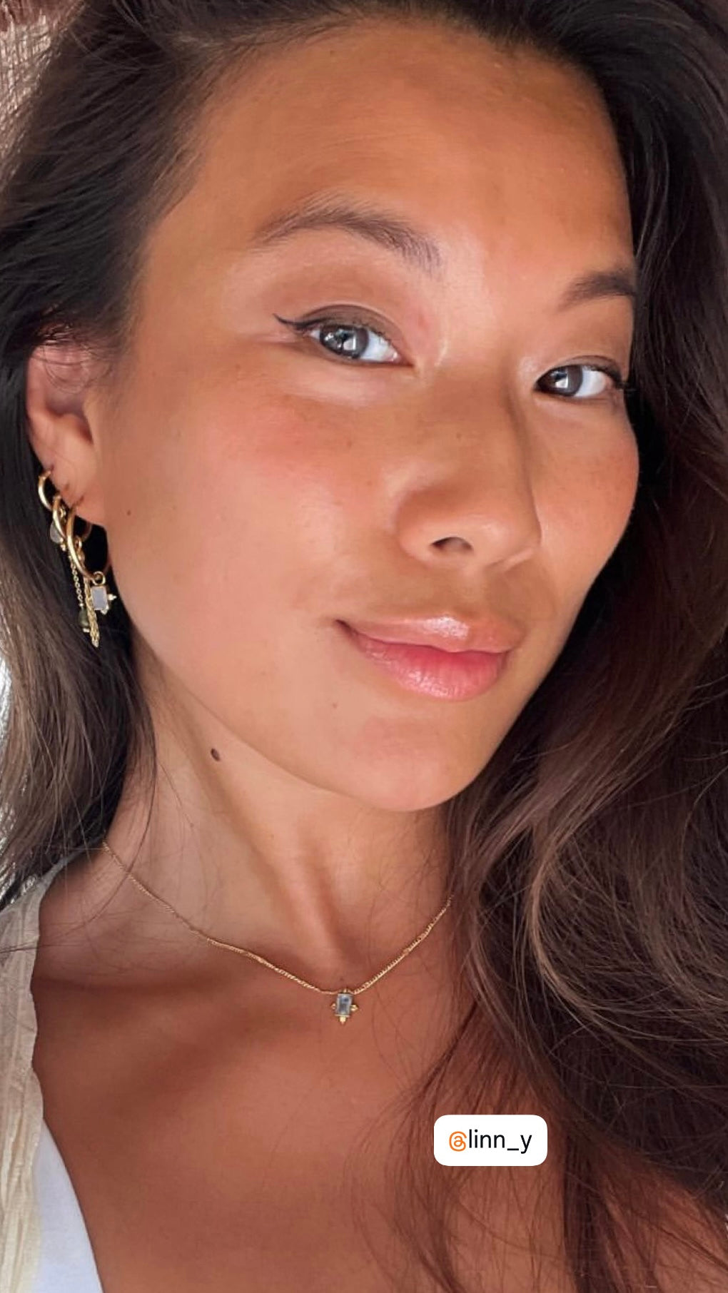 Collar de cadena fina de latón chapado en oro, con colgante de topacio azul.