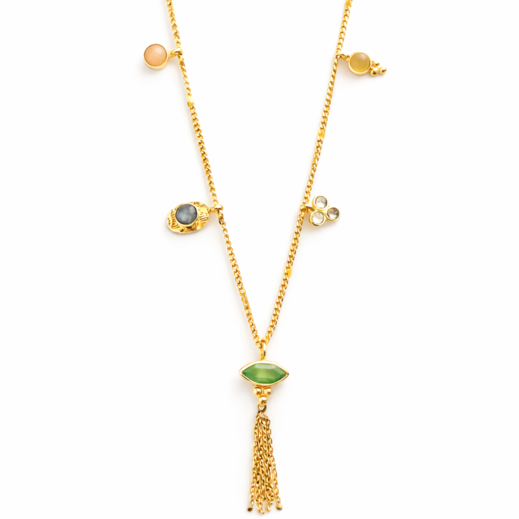 Collar de cadena fina de latón chapado en oro, con las siguientes piedras: