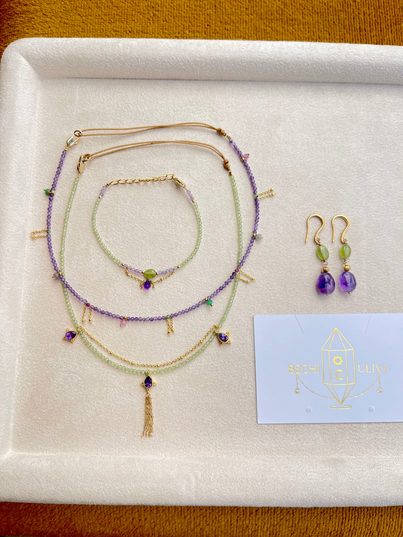 Gargantilla de olivina y amatista con cadena con baño de oro por Bechi Ulivi Jewels