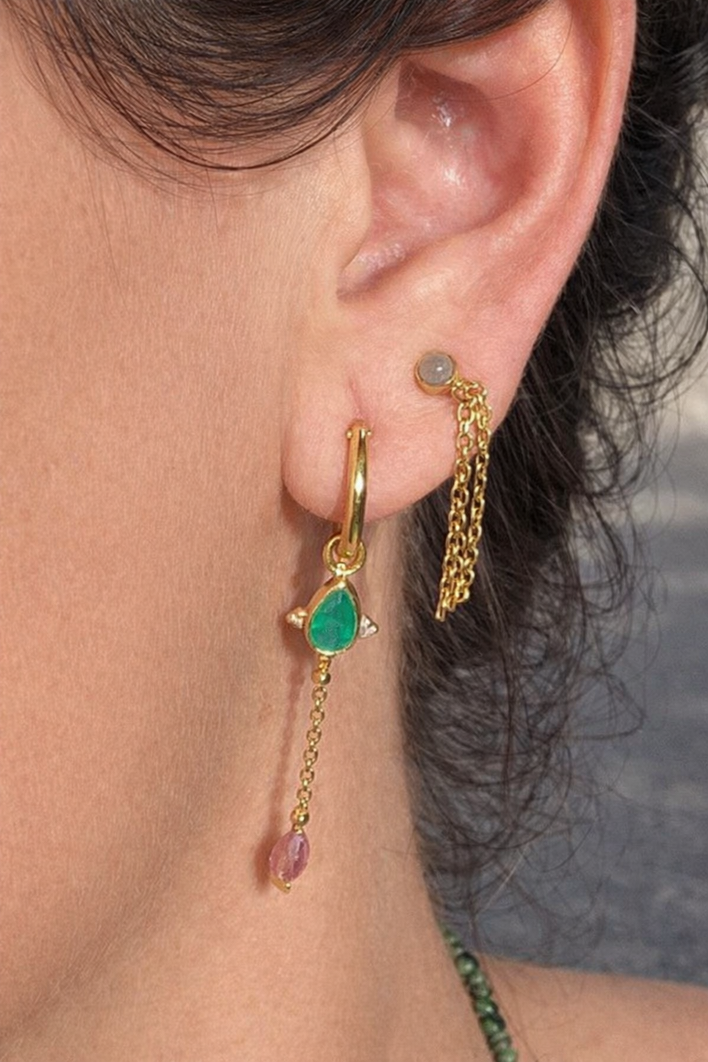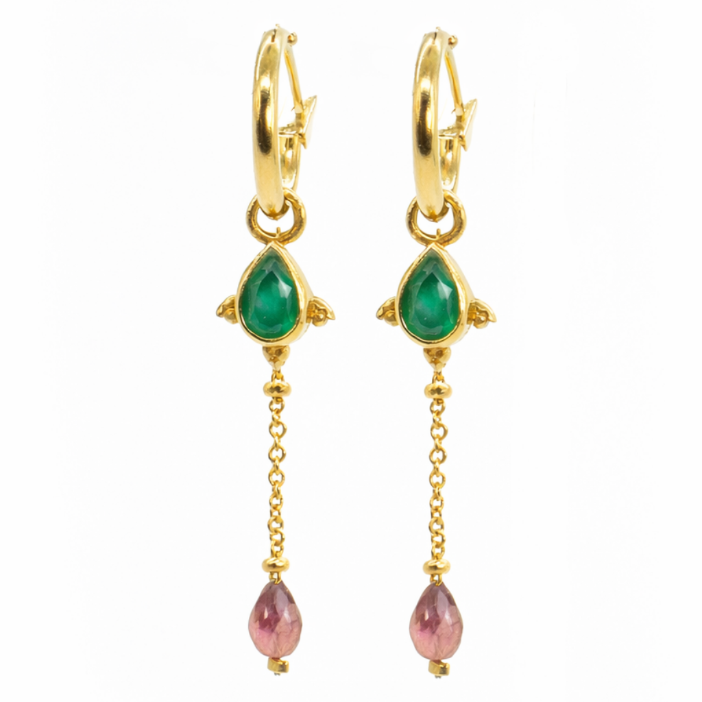 En Bechi Ulivi Jewels, nos enorgullecemos de nuestro compromiso con la calidad. Cada pendiente está elaborado en latón de primera calidad y chapado en oro de 1 micra en España, lo que garantiza su durabilidad y un acabado de lujo. Las piedras naturales de Aros Estrella pueden variar en tono, lo que les confiere un carácter único, pero tenga la seguridad de que cada par está diseñado para deslumbrar. La versatilidad de estos pendientes te permite lucirlos de tres maneras distintas: con la cadena, sin la cadena o simplemente como elegantes aros. Esta adaptabilidad los convierte en una pieza esencial en cualquier colección de joyas.