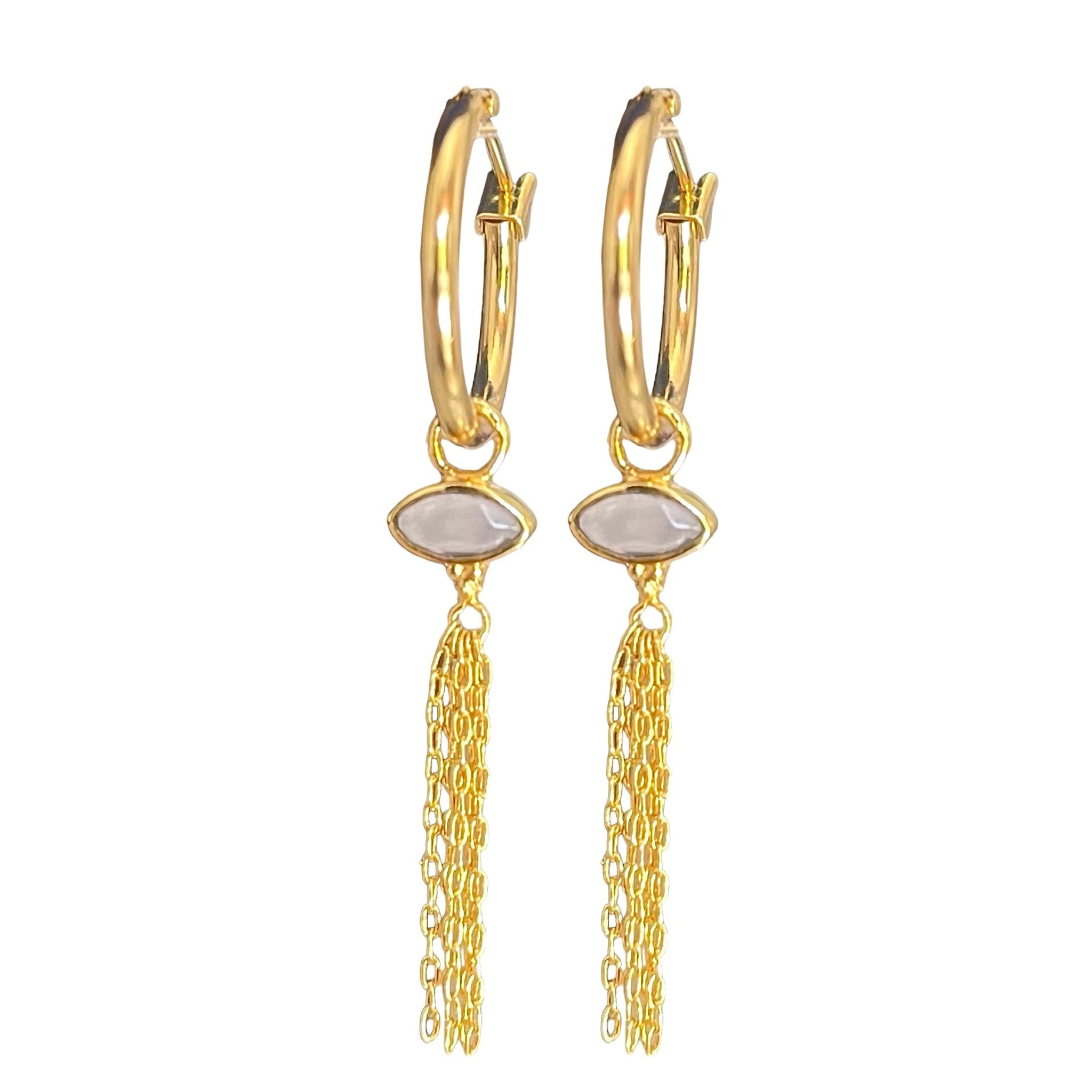 Los Aros Sira con Calcedonia Rosa están elaborados con latón chapado en oro de alta calidad, garantizando una durabilidad excepcional. El chapado en oro de 1 Micra, realizado en España, no solo asegura que cada aro mantenga su brillo y esplendor a lo largo del tiempo, sino que también ofrece una experiencia de uso cómoda y ligera. La calcedonia rosa, con su suave tonalidad, se convierte en el complemento perfecto, añadiendo un toque de sofisticación a cualquier atuendo.