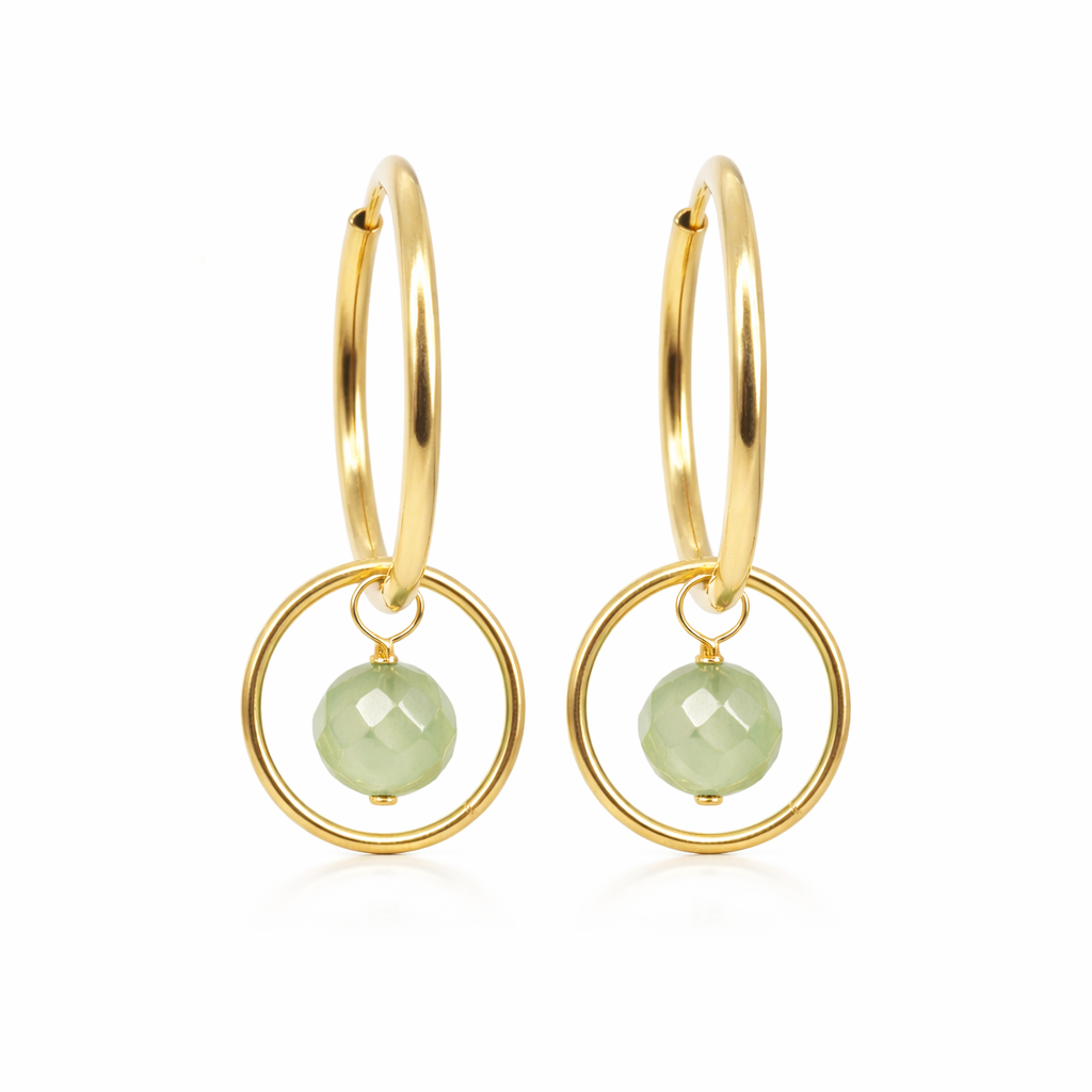 Pendientes criolla de latón chapado en oro (1 Micra) con piedra prehnita tallada.