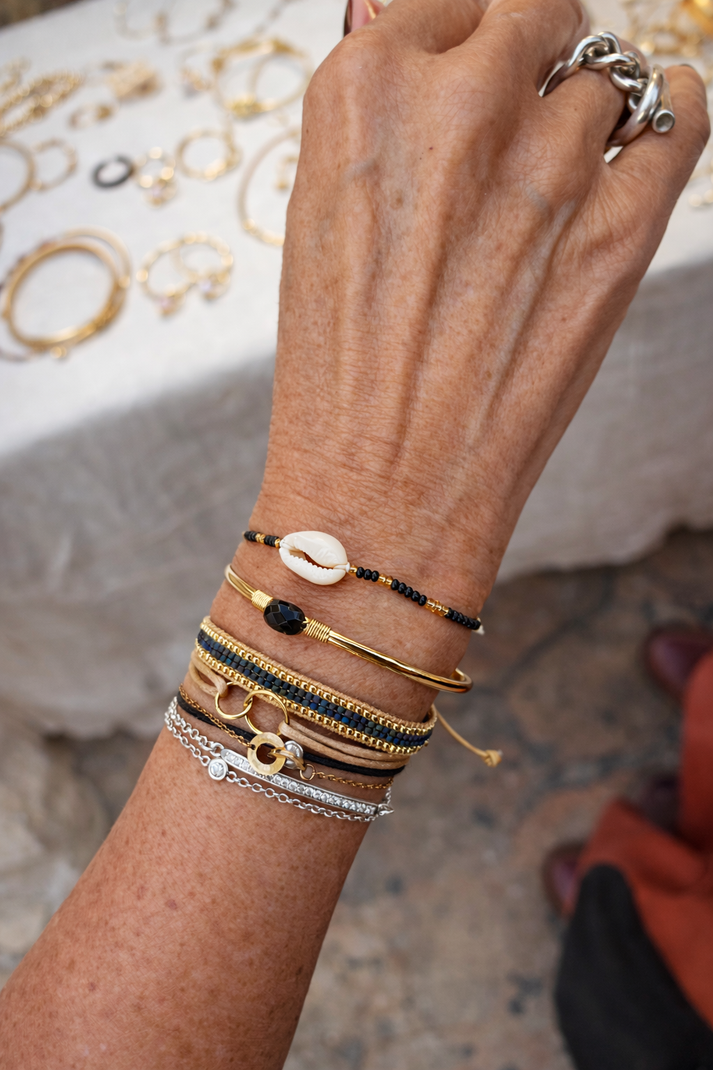 Ya sea que te vistas para un evento formal o busques añadir un toque de elegancia a tu atuendo diario, la pulsera Claudia Ónix negro se adapta con facilidad. Su diseño chic combina a la perfección con cualquier atuendo, haciendo de esta joya una adición versátil a tu colección. Llévala sola para un estilo minimalista o combínala con otras pulseras para una declaración audaz; esta pieza está diseñada para ser tu accesorio favorito.